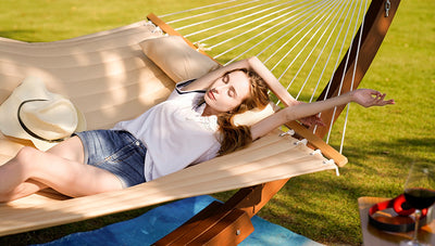 Stretch out in style with this handwoven double hammock—breathable, weather-resistant, and built for two with total comfort.