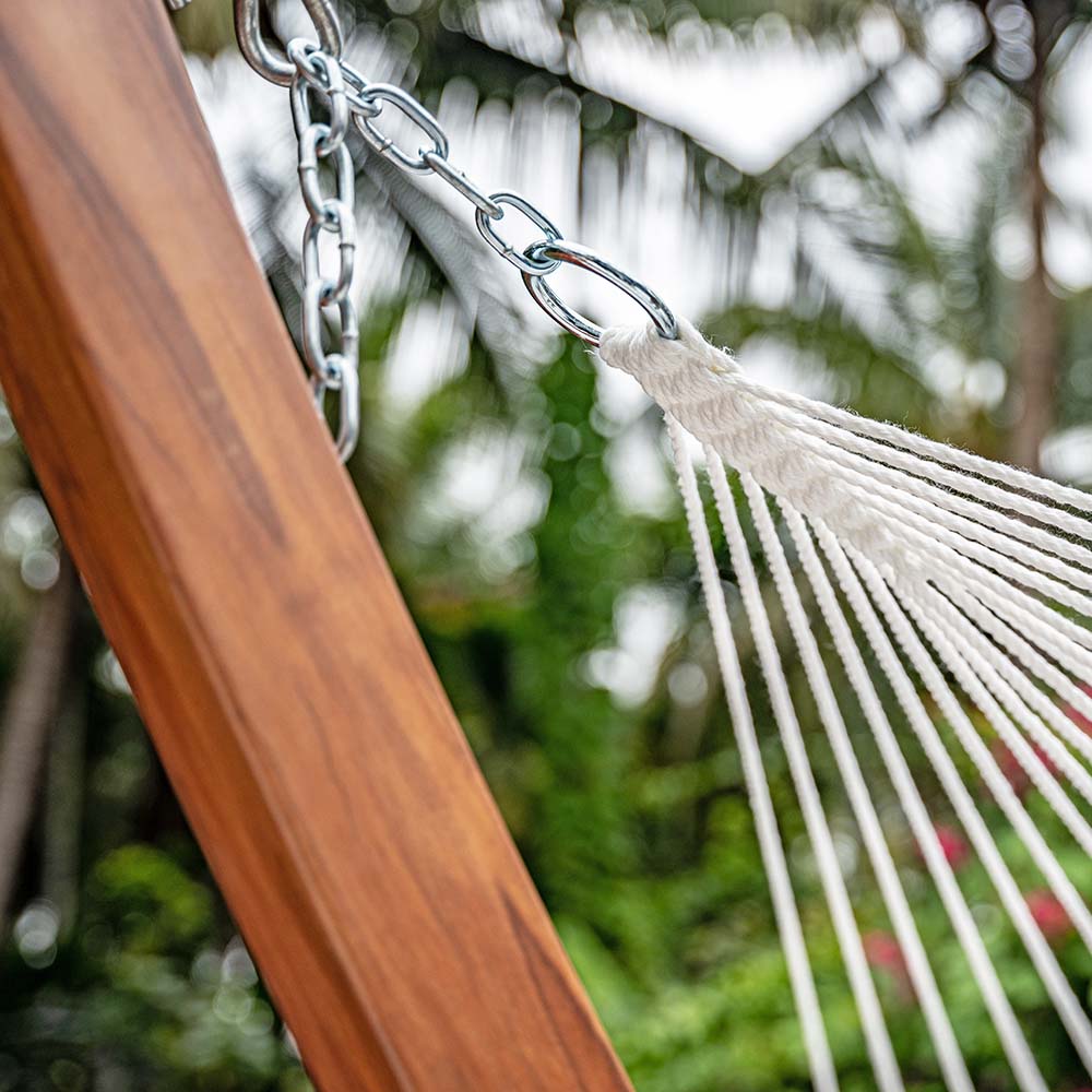 Steel chains allow flexible height adjustment and ensure a secure, stable hammock setup.